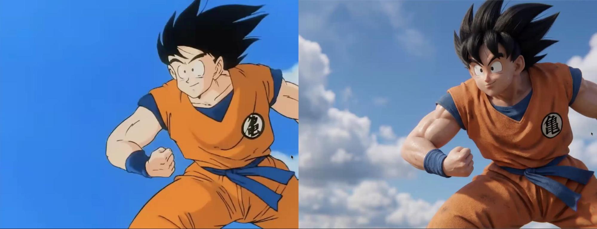 Ao mesmo tempo, essa familiaridade aumenta o nível de exigência. Qualquer deslize visual, inconsistência de personagem ou escolha estética fora de tom se torna imediatamente perceptível. O nosso desafio não era apenas “fazer funcionar”, mas fazer com que o resultado fosse imediatamente reconhecível como Dragon Ball, mesmo em uma linguagem visual completamente diferente.
