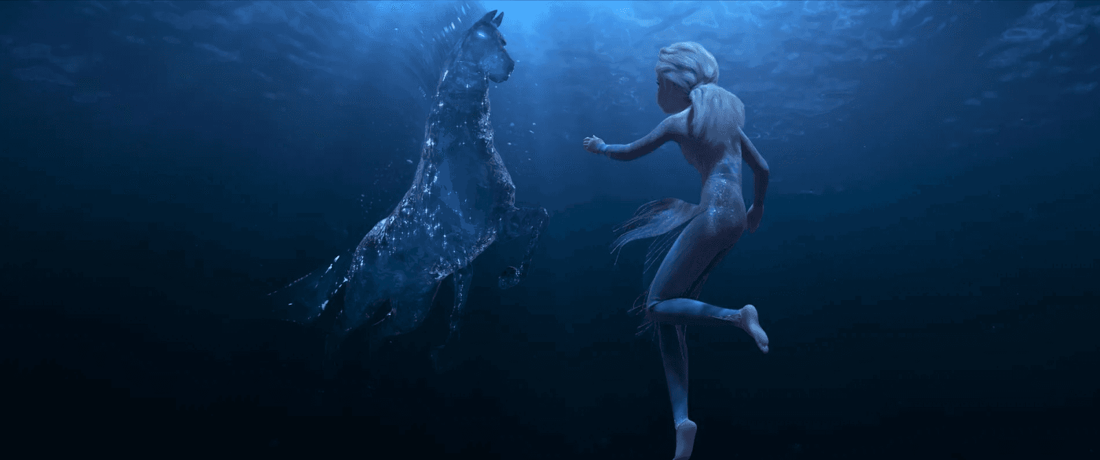 Já a física de neve e água foi resolvida por motores como Matterhorn e Splash, capazes de simular materiais com peso, elasticidade e fluidez controlados. Isso permitiu, por exemplo, que o Nokk, o cavalo de água, mantivesse volume e presença dramática mesmo sendo formado por líquido.