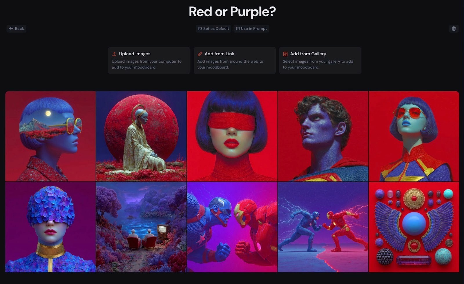 Entre as plataformas de geração de imagem, o Midjourney foi uma das primeiras a transformar o conceito de moodboard em um recurso nativo.
