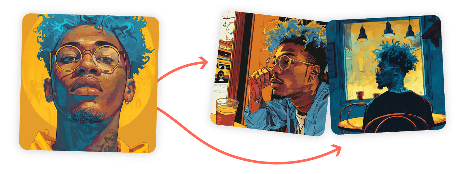 Isso não elimina o papel do texto. Quando o estilo já está ancorado em referências visuais, o prompt deixa de carregar sozinho o peso da direção estética e ganha espaço para algo mais interessante: descrever melhor a cena, o contexto e a intenção da imagem.