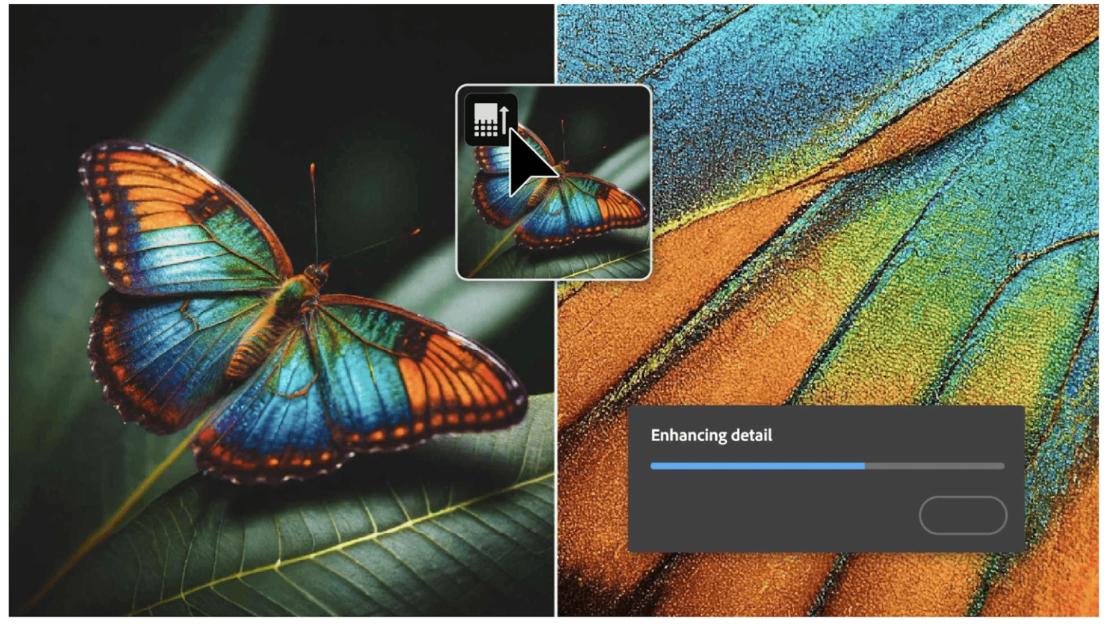 O recurso Enhance Detail também é relevante para arquivos de grande formato, adicionando nitidez e microtexturas após a geração inicial.