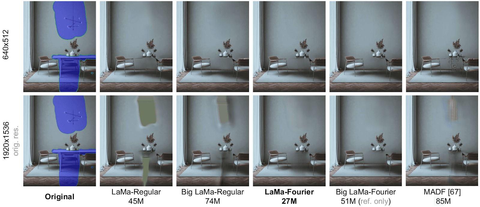 O LAMA é um modelo treinado especificamente para reconstruir o que está atrás do objeto que você quer remover. Em vez de só “tampar o buraco”, ele refaz o fundo de maneira mais coerente. Funciona muito bem em cenas urbanas, por exemplo. Tirar fios do céu, apagar pessoas ao fundo ou remover elementos que poluem a composição costuma ficar bem mais natural com ele.