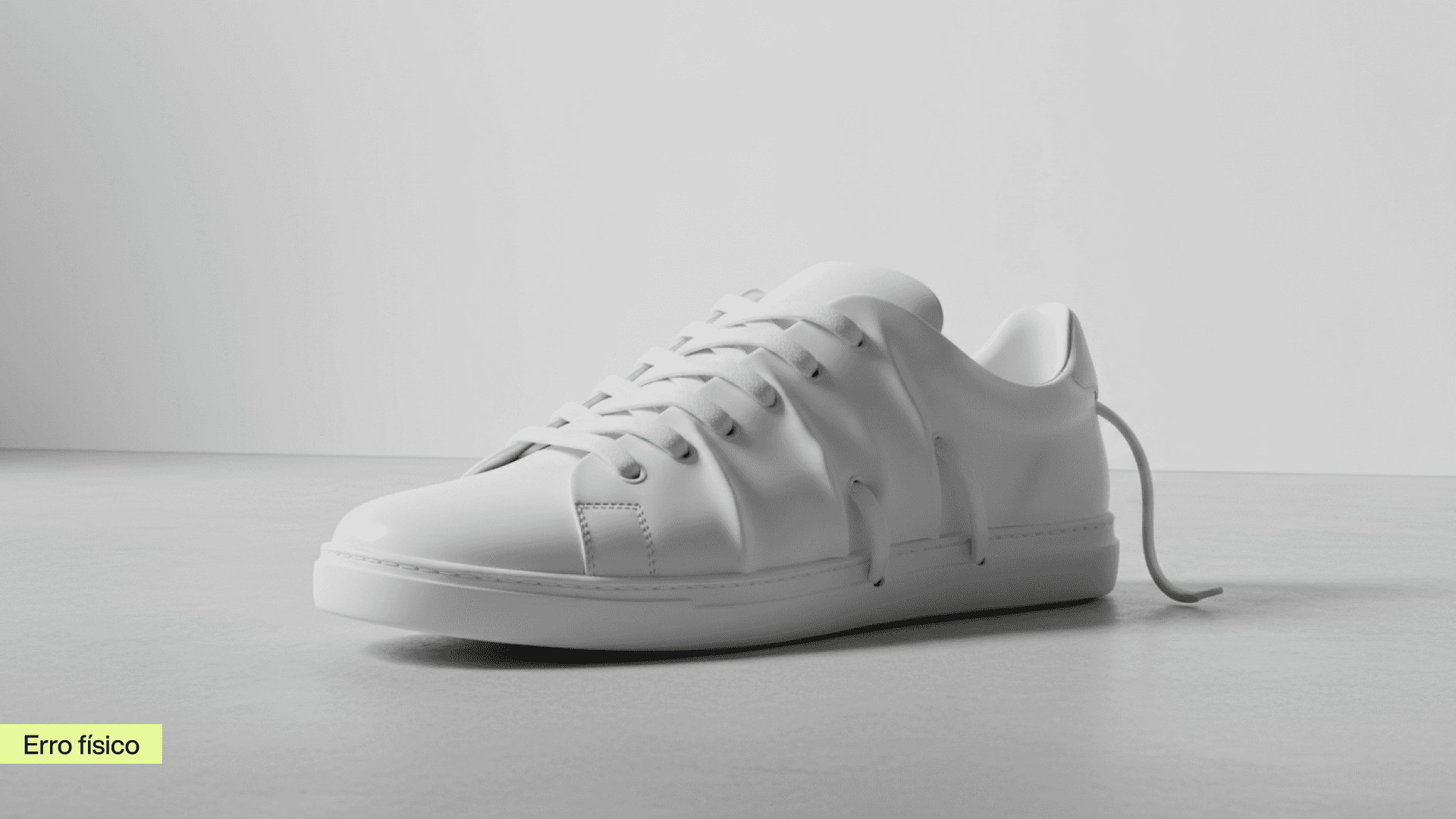 A IA não “enxerga” objetos em 3D. Quando a tarefa exige rotacionar um produto com precisão técnica ou corrigir perspectiva estrutural profunda, o resultado pode parecer convincente à primeira vista, mas não fiel ao design original.
