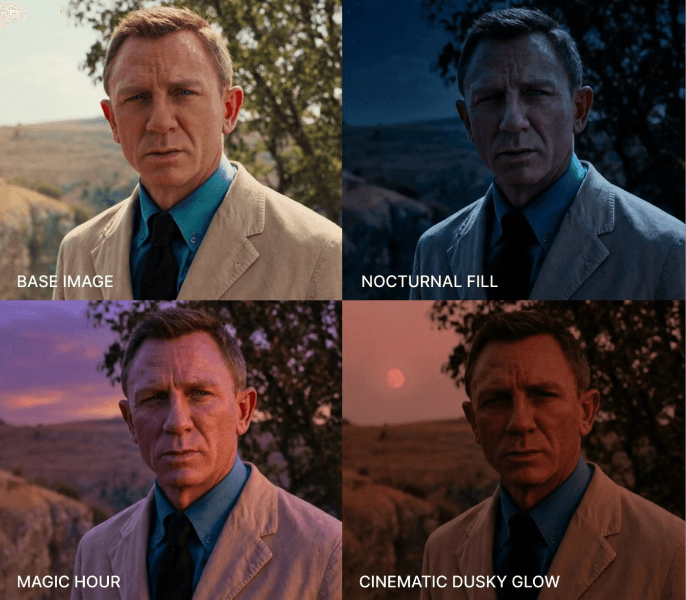 Esta é uma das funcionalidades mais práticas: pegar uma imagem e aplicar um clima completamente diferente, como transformar uma cena diurna em iluminação noturna, adicionar neblina ou criar efeitos de golden hour. Isso vai além de um simples filtro, o modelo recalcula iluminação, sombras e reflexos para adaptar a atmosfera geral de forma coerente.