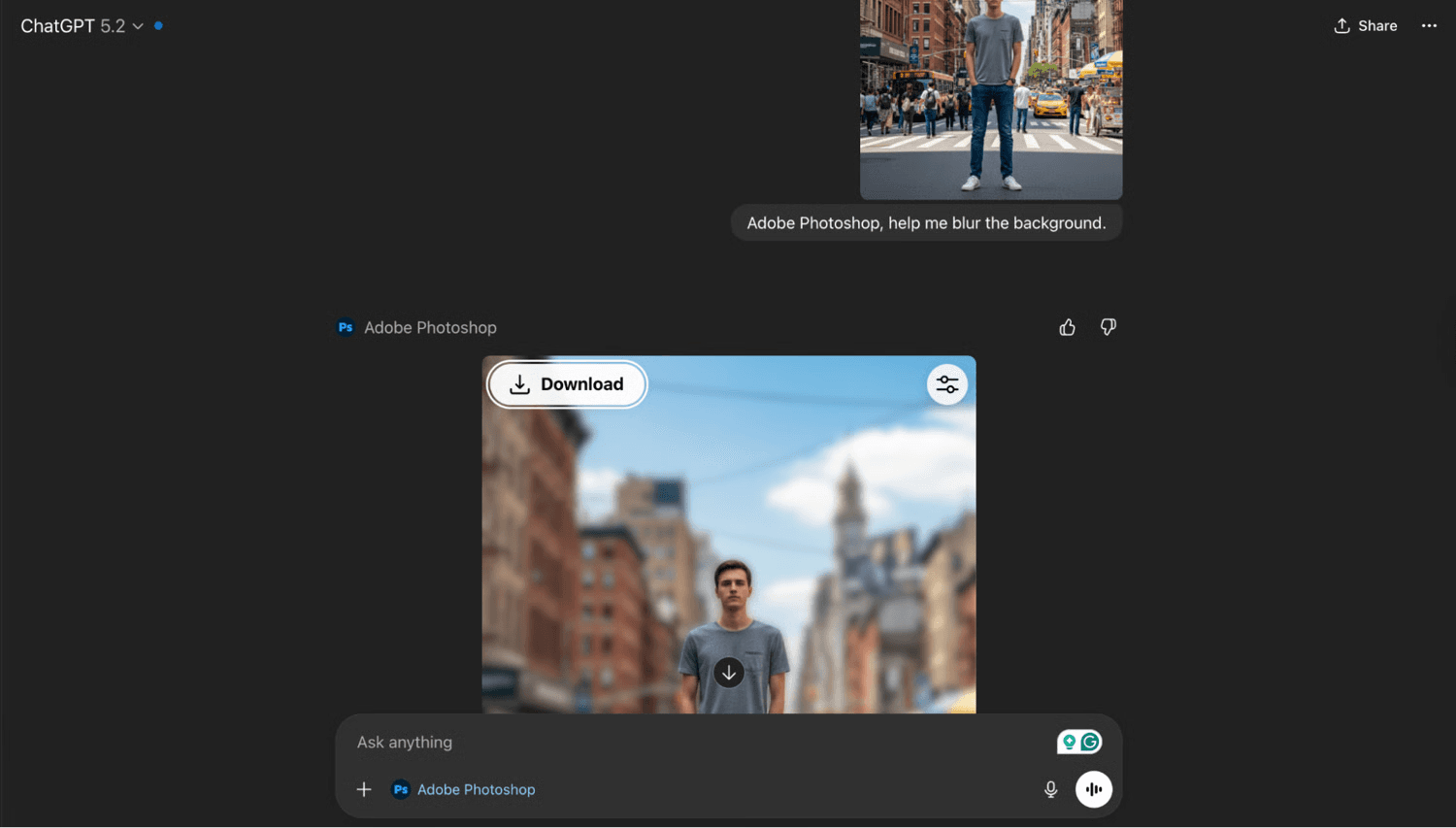 Essa separação preserva padrões profissionais, fidelidade visual e compatibilidade com fluxos de trabalho já existentes, ao mesmo tempo em que oferece um acesso mais fluido às capacidades técnicas da Creative Cloud. Quando um usuário solicita a remoção de um objeto em uma imagem, o ChatGPT não realiza a edição diretamente. Ele entende o pedido, encaminha a tarefa para os servidores da Adobe, aguarda o processamento e devolve o resultado na própria conversa.