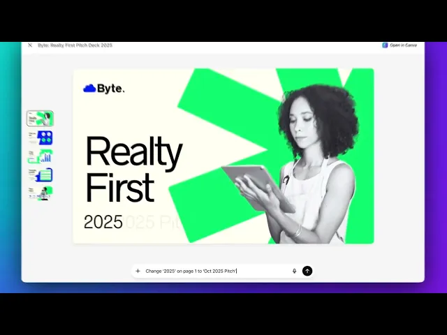 O Canva foi integrado ao ChatGPT em outubro de 2024 com uma proposta parecida: criação rápida de materiais visuais a partir de comandos de texto. A diferença está na profundidade do ecossistema. O Canva se destaca pela velocidade e pela capacidade de gerar peças completas quase instantaneamente. Você pode pedir algo como "crie uma apresentação de 10 slides sobre marketing digital" e receber um deck pronto em poucos minutos. O foco do Canva está claramente na agilidade e no volume, atendendo bem quem precisa produzir muito, em pouco tempo.