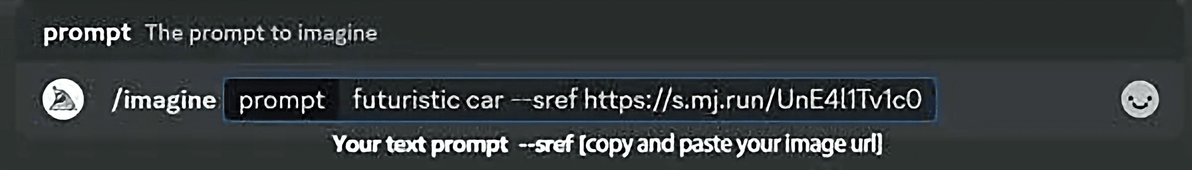 /imagine [descrição do conteúdo] --sref [URL da imagem]