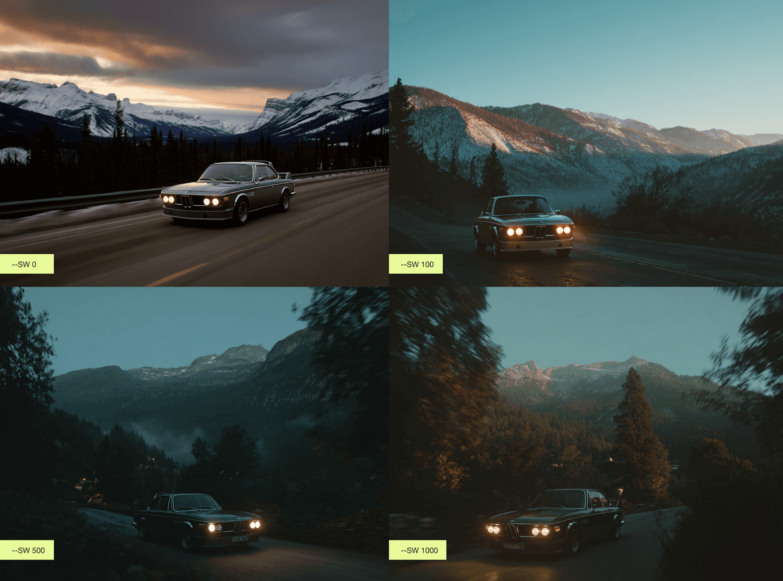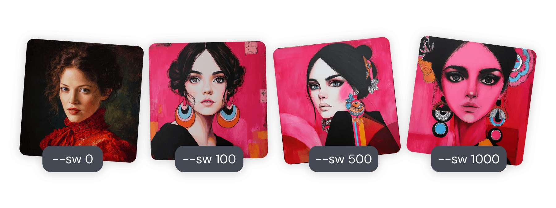 5. Ajustar a intensidade do estilo com Style Weight (--sw)