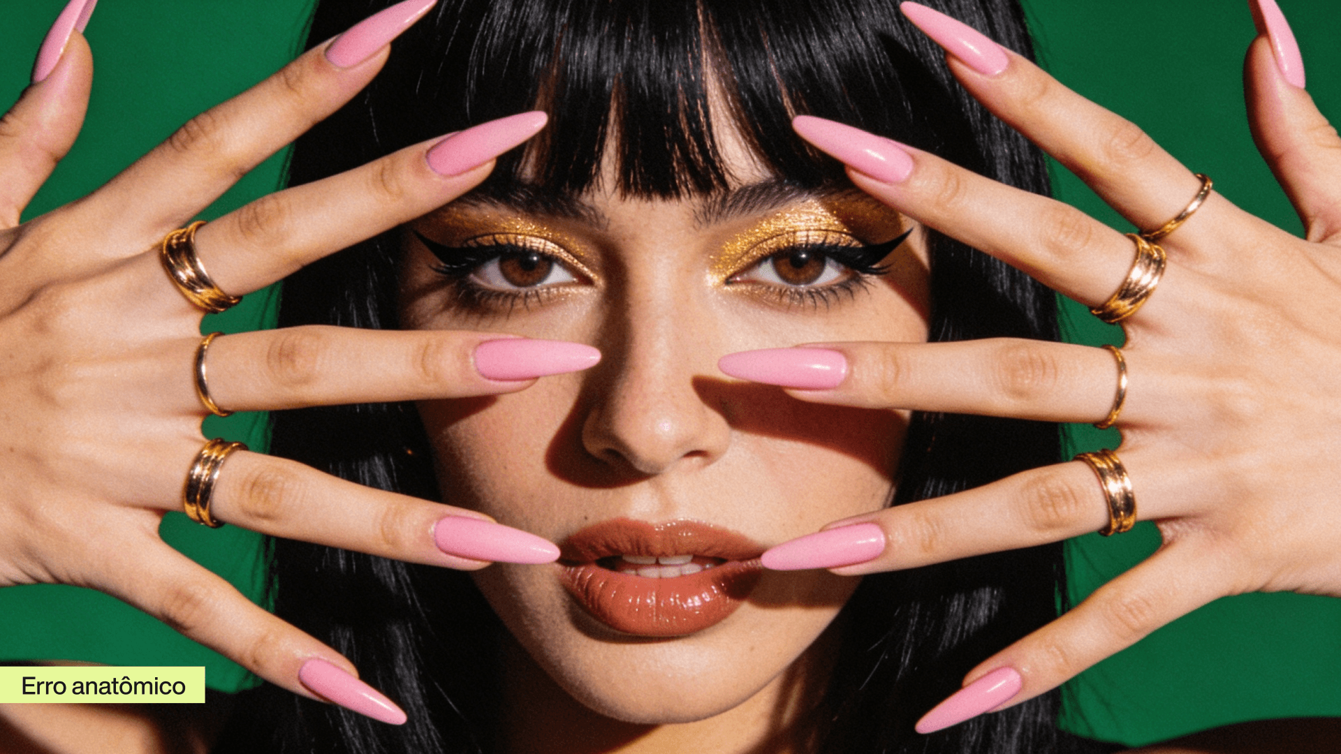 O segundo erro crítico é a falha na simulação física e anatômica. Aparece como uma mão com 6 dedos, pernas que dobram no sentido errado, objetos que flutuam sem lógica, água que cai para cima, roupas que se movem independentemente do corpo.